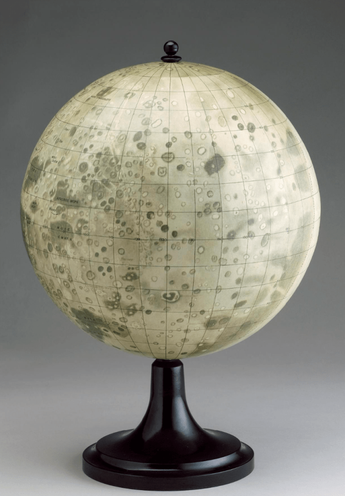 This globe was produced, which is a fantastic glimpse at how much of the surface Luna 3 managed to add to our map. But you can clearly see the massive blank spot, and Mare Orientale remains frustratingly in mystery.