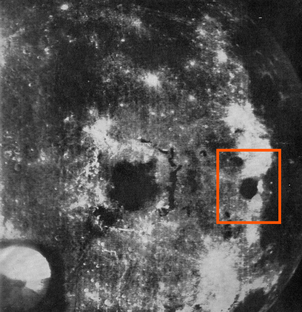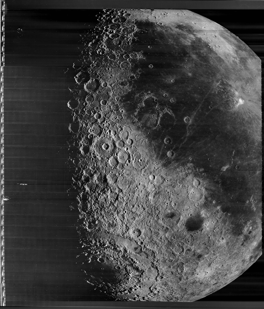 In October of 1959, in a cramped room on the Crimean Peninsula, Russian engineers Boris Chertok, Sergei Korolev, and colleagues watched as images materialized slowly on heat-sensitive paper.6 Here is the first image we have of the far side of the Moon: